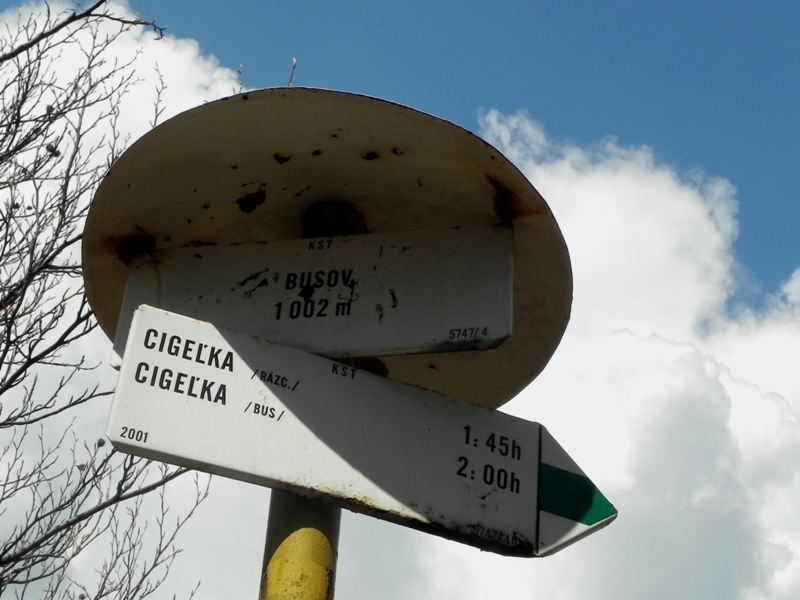 Na Busov można wejść szlakiem na dwa sposoby, z dwu miejscowości: Cigeľka (Cigielka) i Gaboltov. Wybraliśmy podejście z Cigielki, bo krótsze (choć znacznie bardziej strome), a poza tym od Gaboltova już kiedyś podchodziliśmy? Pętelka raczej nie wchodziła w grę, bo na chaszczowanie nie byliśmy gotowi, a łojenie asfaltową drogą łączącą te dwie miejscowości w upalny dzień nie było kuszącym pomysłem.