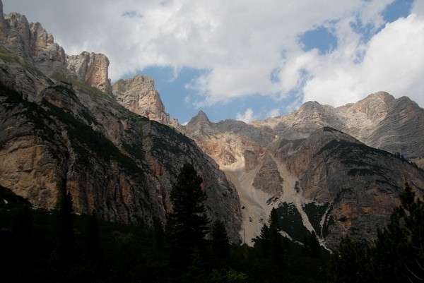 Wiele pionowych ścian i kotłów powstało w okresie zlodowacenia. Obecnie jedyny naturalny lodowiec znajduje się na północnych stokach Marmolady. Mniejsze lodowczyki zobaczymy w kotłach pod północnymi ścianami masywów Cristallo i Sorapiss.