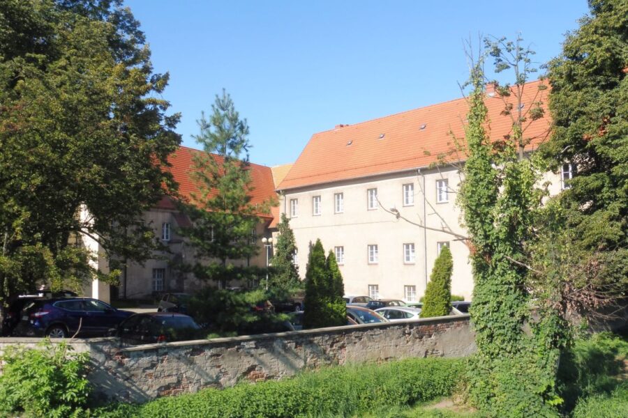 Budowę klasztoru rozpoczęto od wzniesienia refektarza (duża jadalnia) i kuchni, części klasztoru przeznaczonej na cele wspólne i oddzielnie stojącego jednopiętrowego dormitarza, wspólnej sypialni, wysuniętego ku rzece.