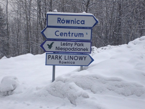 Od rana sypie! Wyruszam z Ustronia Polany w kierunku szczytu Równica. Zaczynam czerwonym szlakiem, który miejscami jest nie do pokonania. W rezerwie mam drogę dojazdową. Dłuższą, ale bezpieczną.