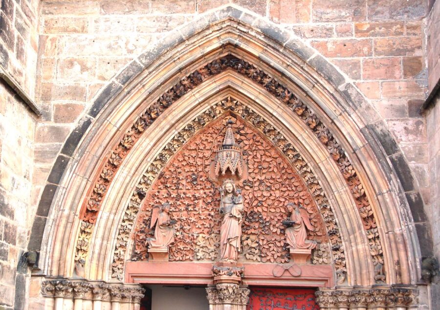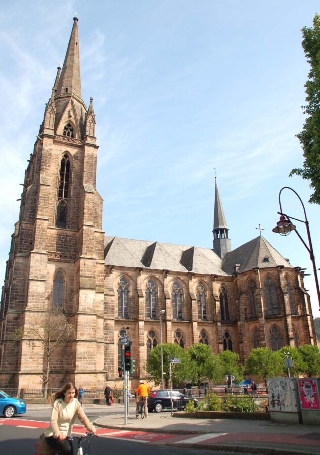 Budowa świątyni stojącej nad brzegiem rzeki Lahn trwała do roku 1340. W okresie Reformacji, która w Marburgu miała miejsce w 1526 roku, jeden z potomków Elżbiety, Landgraf Filip I „Wielkoduszny” (1504-67) wyjął z sarkofagu i rozrzucił jej doczesne szczątki. Sarkofag ten ocalał, nadal można go podziwiać. To wspaniałe dzieło sztuki złotniczej wykonano w latach 1235-49, wzorując się na sarkofagu NMP w katedrze w Akwizgranie. Jest rzeźbiony i pokryty złotem oraz szlachetnymi kamieniami.