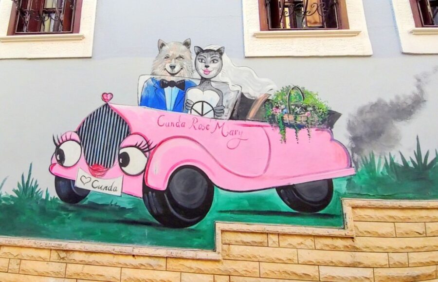 Na nabrzeże i do portu Cunda schodzi się wąskimi uliczkami wśród palm i bugenwilli.