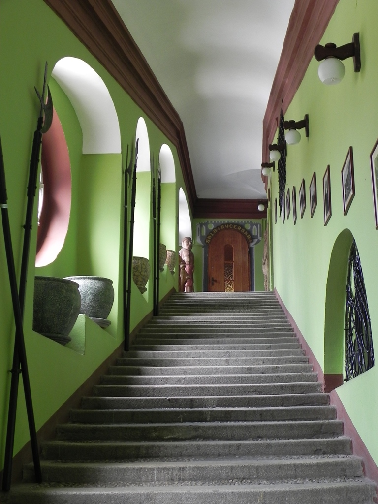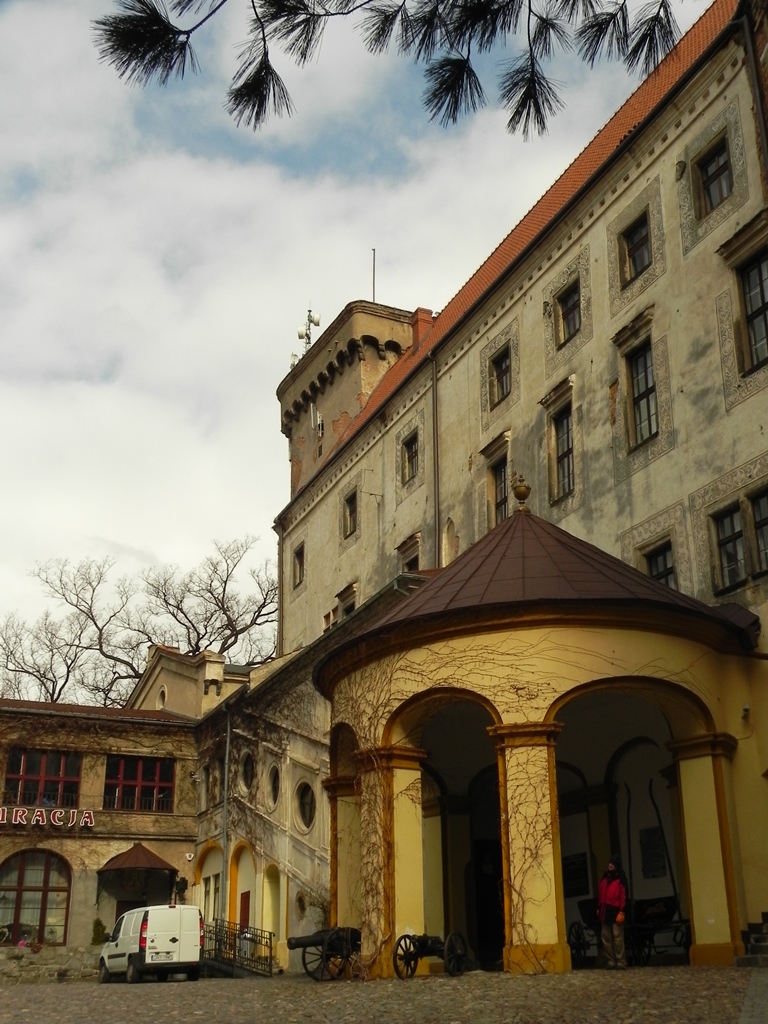 Potężna warownia stoi ponad miastem na wzgórzu wznoszącym się 225 m n.p.m. na lewym brzegu Nysy Kłodzkiej. Kiedyś zamek był połączony fortyfikacjami z umocnieniami miejskimi, dziś już niewiele po nich śladów. Teraz biskupi zamek jest hotelem. Udało nam się zobaczyć wspomniane schody i wejść na wieżę ? nic poza tym. Z wieży widok ładny. Ale salę rycerską i głodową zobaczyć mogą jedynie hotelowi goście. Niestety. Pokój dwuosobowy kosztuje 150 zł. A wstęp na wieżę? Ups! Nie pamiętam…