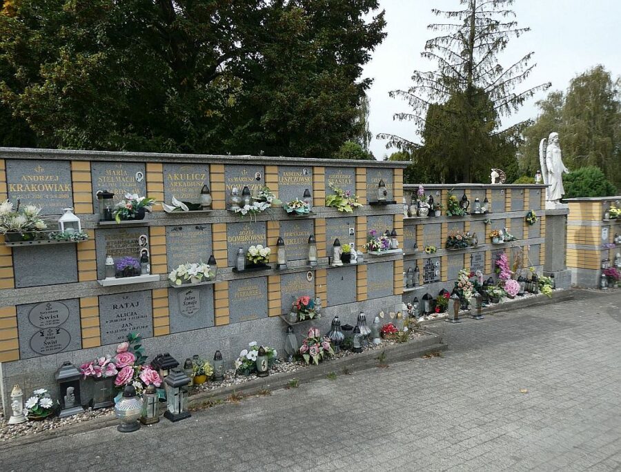 Od grudnia 2008 roku istnieje możliwość pochowania prochów skremowanych zmarłych w kolumbariach, czyli ścianach z niszami na urny. Pierwsze kolumbarium usytuowane jest w lewej części Alei Głównej i składa się z 6 bloków pośród których stoi marmurowa postać anioła. Kolumbarium zawiera 126 podwójnych nisz z przeznaczeniem na 252 urny. W roku 2017 na końcu Alei Zasłużonych, za kaplicą, powstały kolejne dwie ściany kolumbarium na łącznie 240 nisz, czyli 480 urn. Pozostałe ściany dobudowywane będą w zależności od potrzeb.