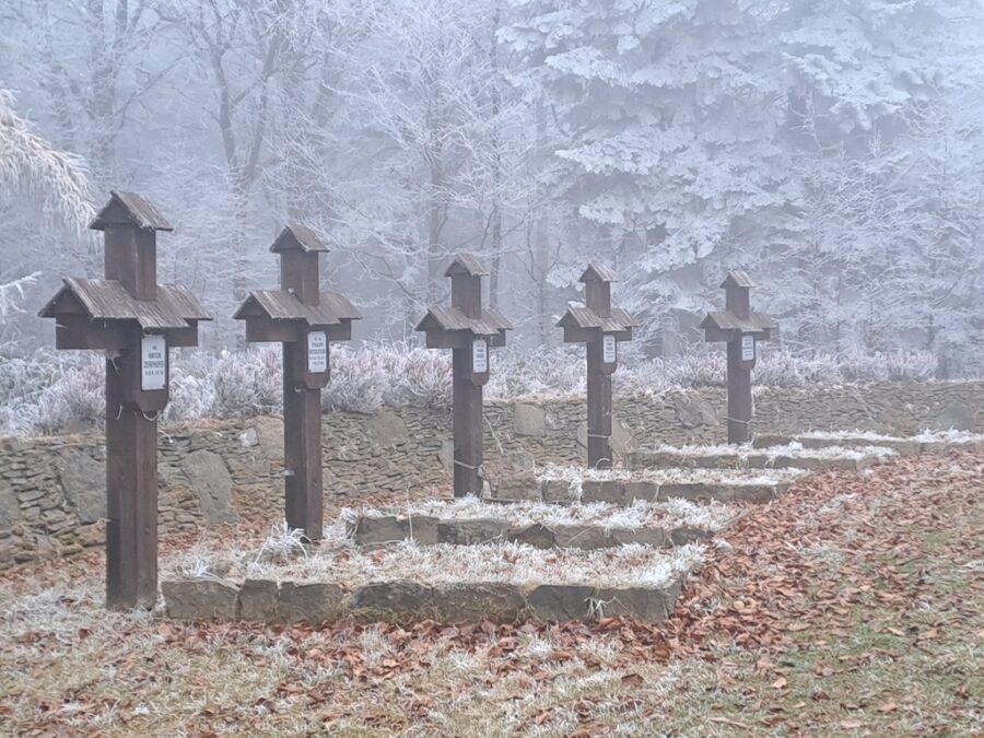 Pochowano tu 42 żołnierzy armii austro-węgierskiej i 12 rosyjskiej, którzy polegli w lutym i marcu 1915 roku. Warto zwrócić uwagę, że wtedy chowano niedawnych wrogów razem, na tych samych cmentarzach…