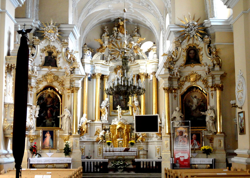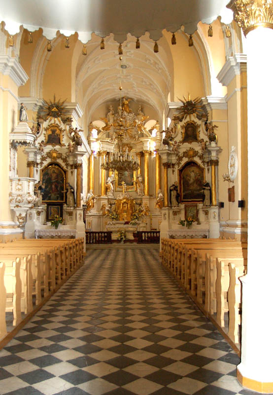 Ale już w roku 1319 zaczęli oni wznosić jednonawowy kościół p.w. św. Doroty, zbudowany ostatecznie w latach 1331-1340. Zniszczony później znacznie podczas pożarów w latach 1531 i 1643, a następnie odbudowywany i rozbudowywany. Z zachowaniem jednak gotyckiego trzonu, chociaż już w stylu baroku i częściowo rokoka. W roku 1624 dobudowano do jego nawy północnej kaplicę Matki Boskiej Różańcowej ufundowaną przez wojewodę sieradzkiego, Stanisława Jaxę Bykowskiego. I nawę boczną, częściowo kosztem budynków klasztornych. Kolejnej przebudowy tej świątyni dokonano w roku 1824 dodając trzecią nawę oraz od południowego zachodu kruchtę, przenosząc do niej główne wejście do kościoła.