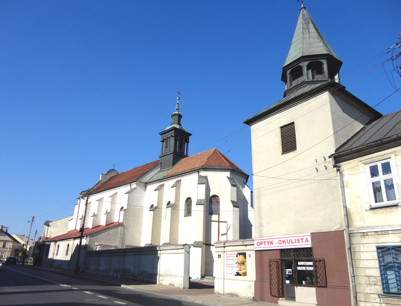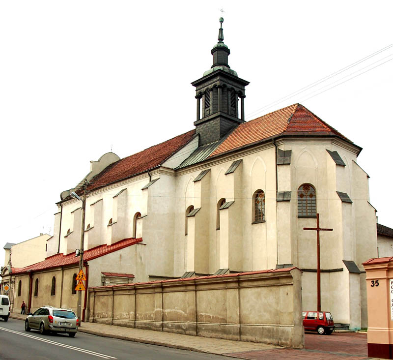 Aż do wieku XVII był on jednym z dwu, obok parafialnej świątyni grodu ? ceglanej gotyckiej fary św. Jakuba przy wschodniej części murów, kościołem w mieście. Zbudowany bowiem w 1373 r. murowany kościółek p.w. Najświętszej Marii Panny przy trakcie krakowskim, w miejscu nazwanym później Krakówką, stał kilkaset metrów na południe poza ówczesnym miastem. W pobliżu kościoła dominikanów, który na początku XVII w. otrzymał drugiego patrona, popularnego wówczas z kultu św. Jacka, stanęła masywna wieża ? dzwonnica na planie kwadratu, z renesansowym dzwonem z roku 1615. Świątynia nie miała bowiem i nie ma wież, a tylko pośrodku dachu wieżyczkę sygnaturki.