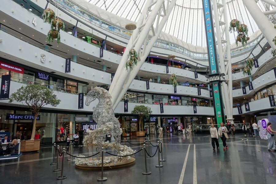 Na przeciwnym końcu bulwaru również Foster zaprojektował Chan Szatyr — ogromne centrum rozrywkowo-handlowe pod namiotem przypominającym jurtę. Wewnątrz znalazło się miejsce na plażę, pole golfowe i galerię handlową — wszystko z naturalnym światłem i klimatyzacją.