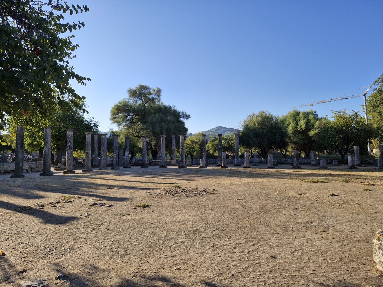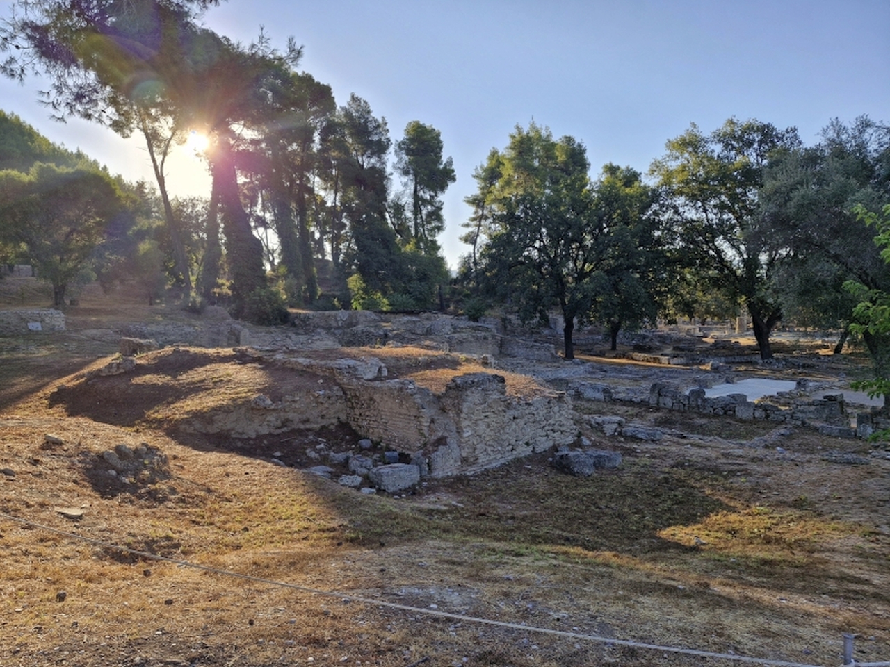 Wśród ruin znajdują się pozostałości domów dla zawodników i widzów. Wśród nich znajdował się dom i pracownia genialnego greckiego rzeźbiarza Fidiasza.