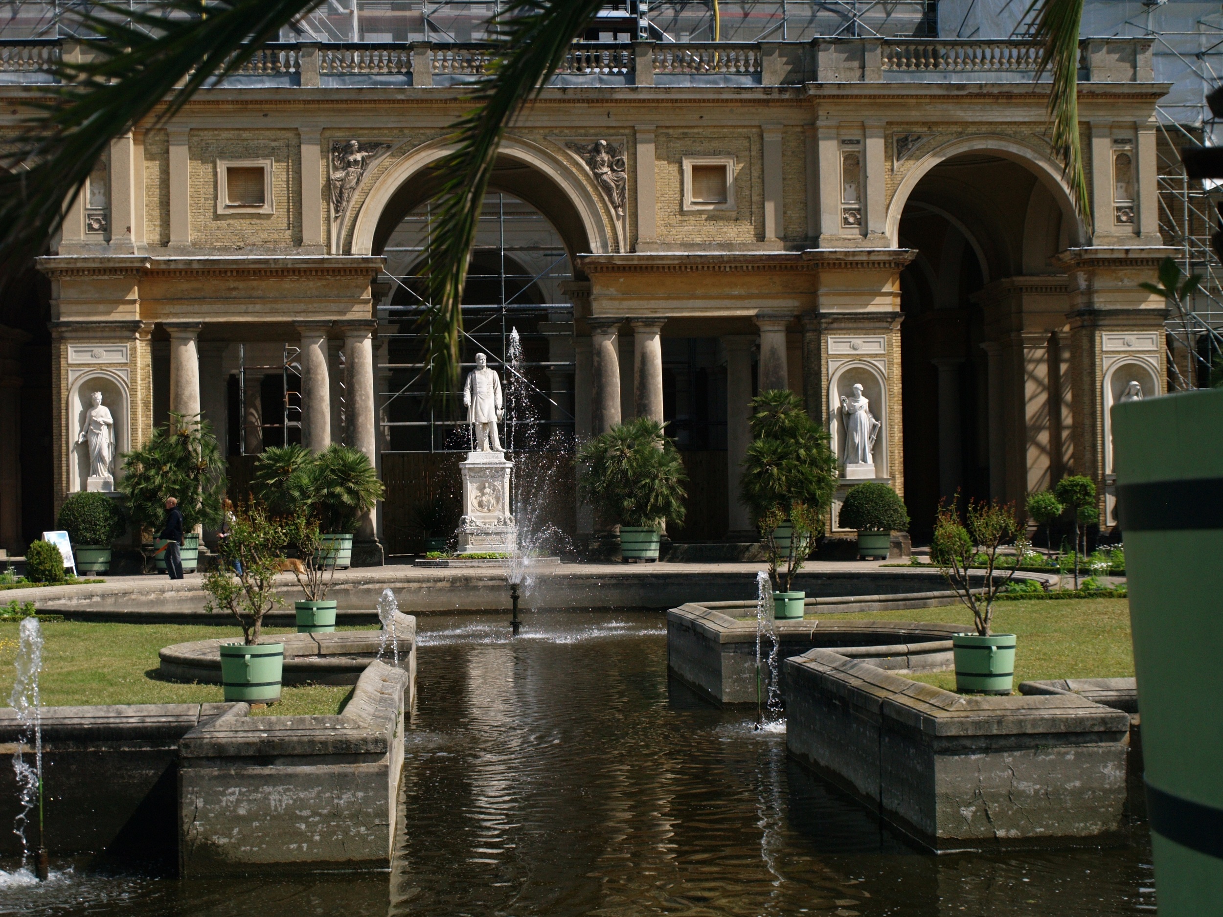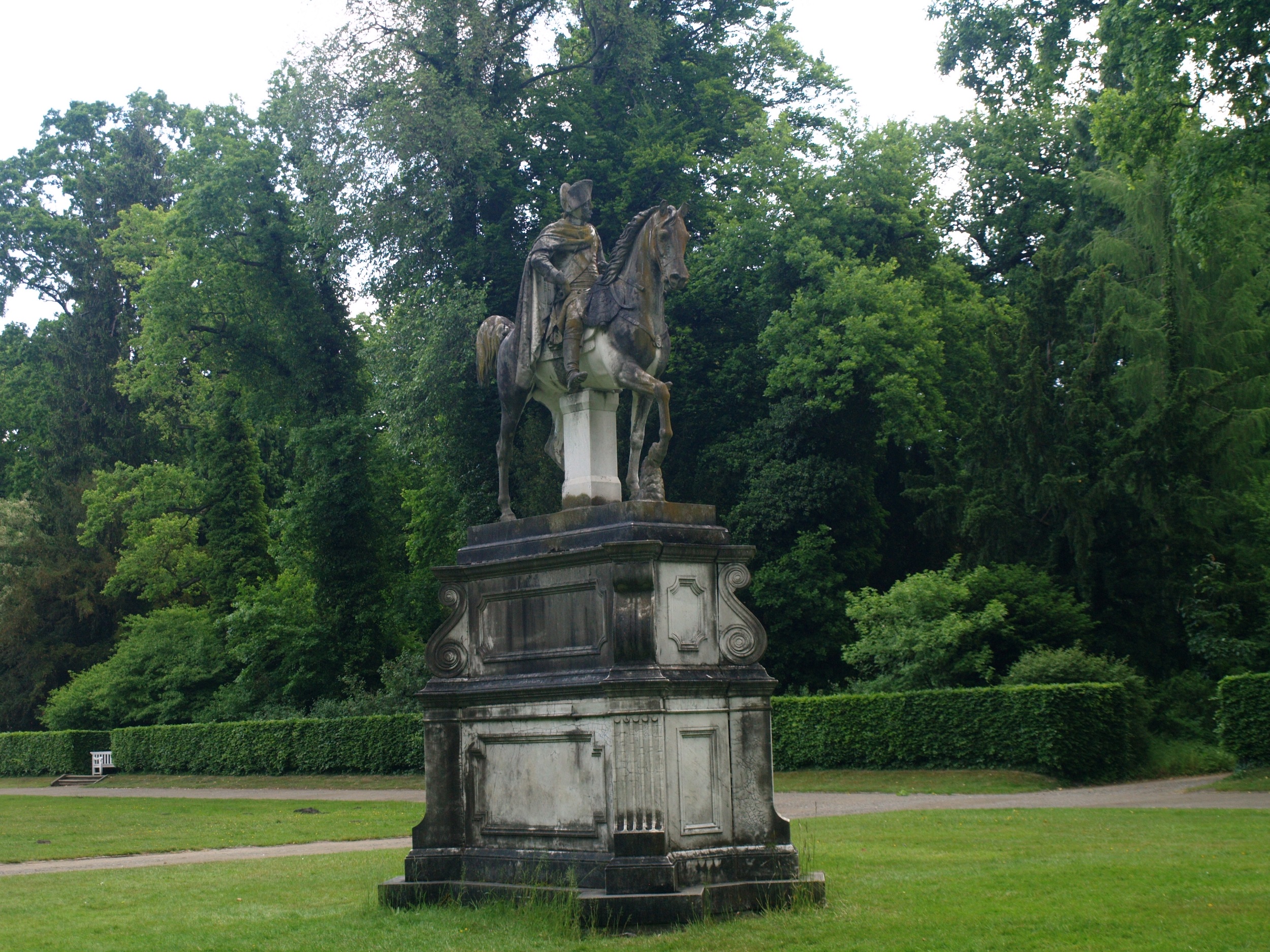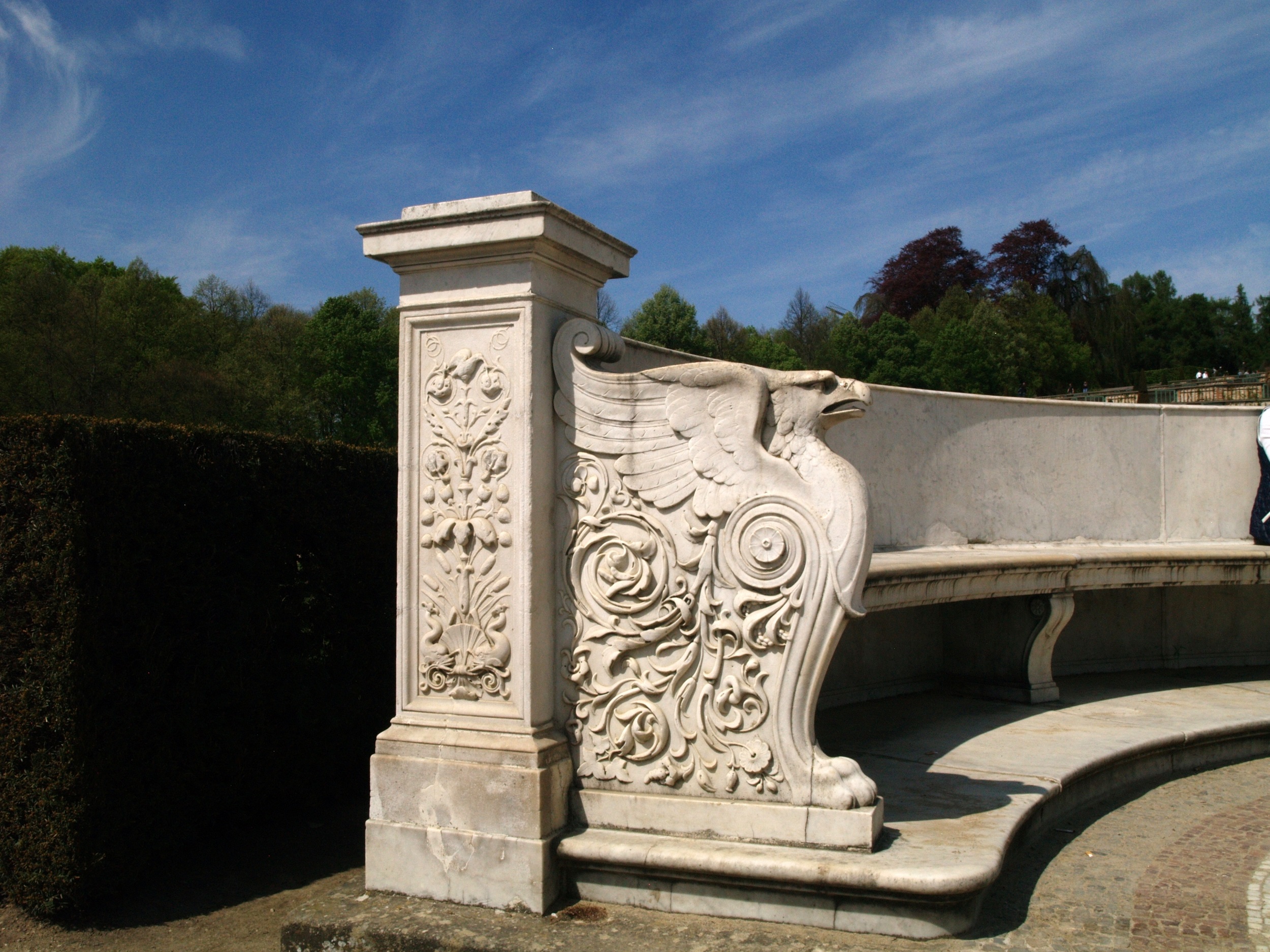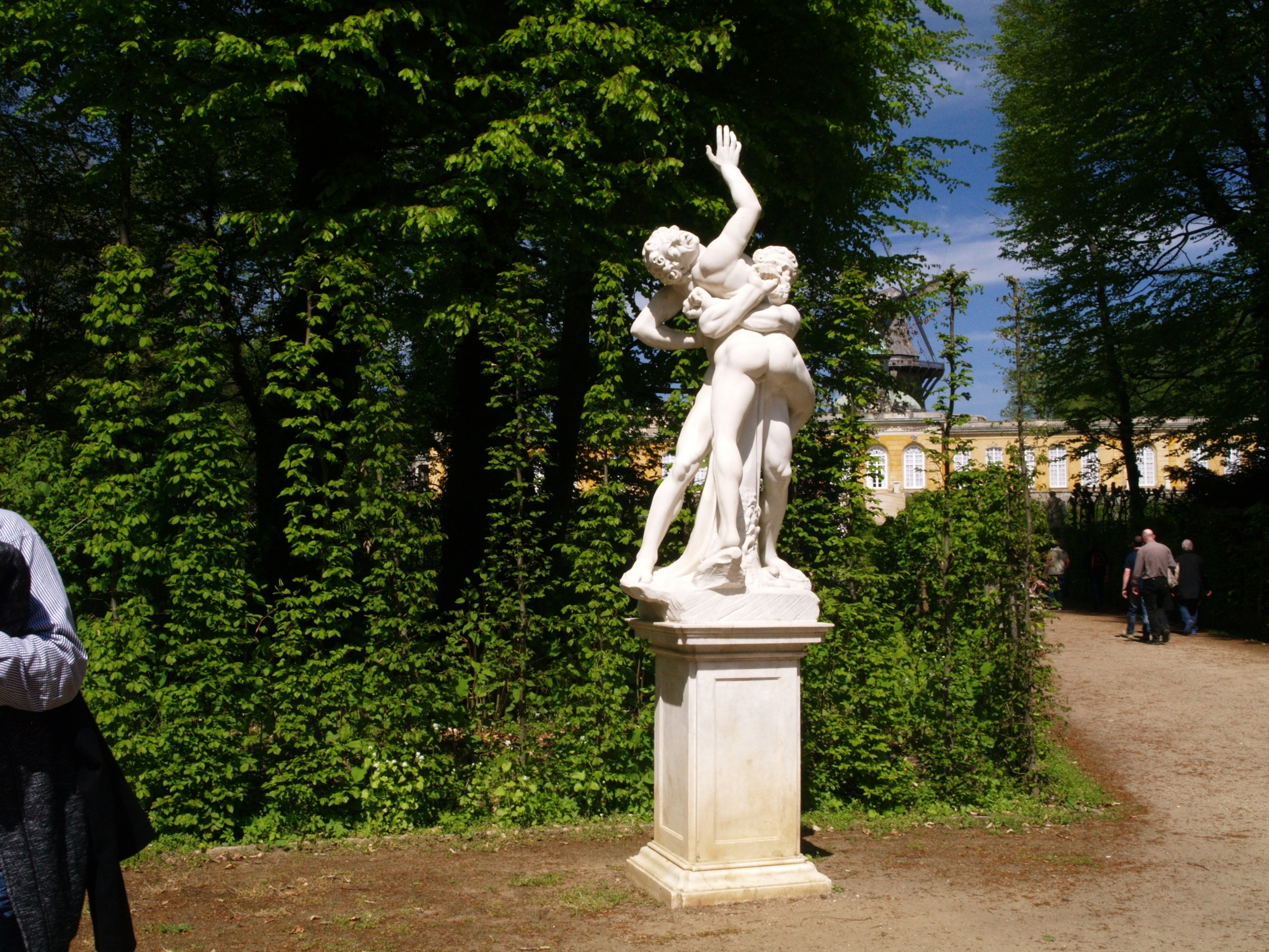 Dwanaście marmurowych posągów rzymskich bogów i personifikacji czterech żywiołów otacza basen; rzeźby Wenus i Merkurego są dziełem francuskiego rzeźbiarza Jeana-Baptisty Pigalle’a, a alegoryczne rzeźby powietrza i wody są prezentem od króla Ludwika XV. Wszystkie te elementy przydały Sanssouci miano „pruskiego Wersalu”.
