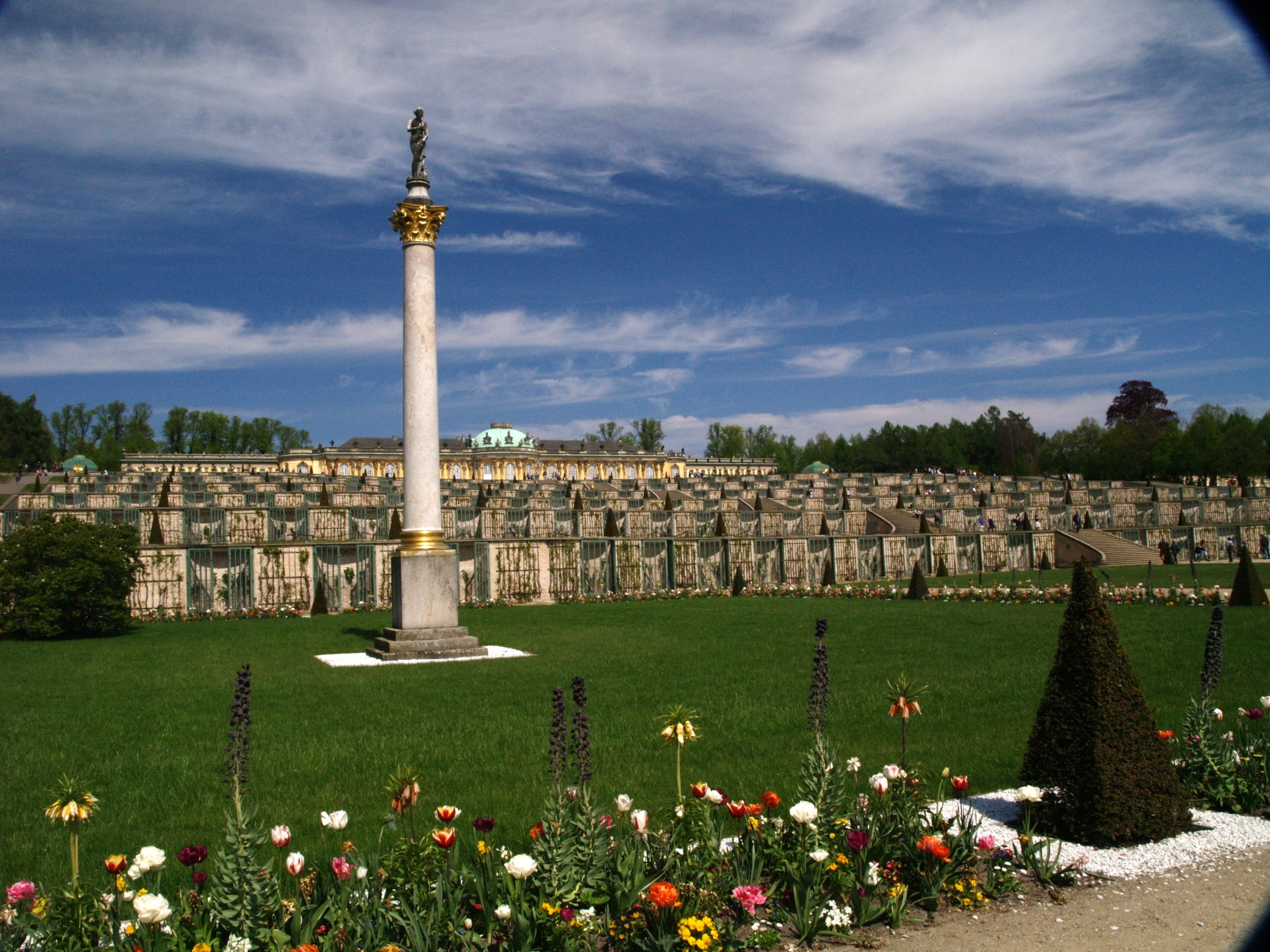 Zostawili w nim swoje dzieła najwybitniejsi architekci, budowniczowie, uczeni i artyści. Perłą wśród nich jest Sanssouci – pałac  i rozległy park, położony na 298. hektarach bogato rzeźbionego terenu. Kształtowano go sukcesywnie w ciągu ponad stu lat, zmieniano, wprowadzano nowości zgodne z trendami, rozbudowywano.