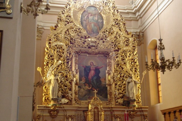 Barokowy kościół budowano przez pół wieku. Stoi on w zachodniej części górnego tarasu, ma plan krzyża. Dwie dwukondygnacyjne wieże miał zakończone hełmami. Na murach, przy schodach do Kaplicy Kanclerskiej postawiono figury świętych wykute z piaskowca. Do dzisiaj zachowały się tylko dwie. Do wykończenia wnętrza sprowadzono czarne marmury dębnickie i włoskie majoliki (płytki ceramiczne oblane barwnym szkliwem). Wnętrze kościoła zapełniło 10 barokowych i rokokowych ołtarzy. Ołtarz główny p.w. Niepokalanego Poczęcia Najświętszej Marii Panny oraz dwa boczne zostały wykonane ze złoconego dębu. W kaplicy po prawej stronie był ołtarz majolikowy.