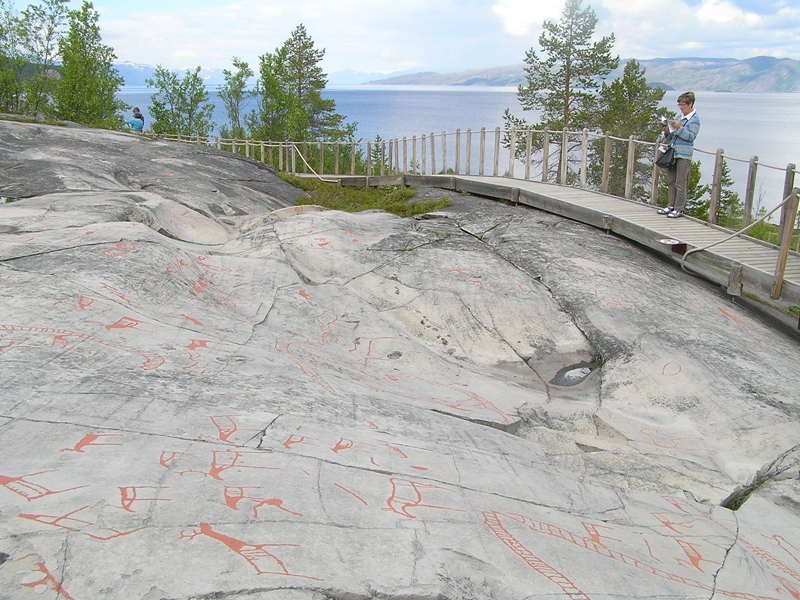 Ze skałami związana jest też największa atrakcja turystyczna, jaką ma Alta. Na kamieniach nad brzegiem morza odkryto tu ponad pięć tysięcy rysunków naskalnych. Wiek najstarszych szacuje się na 6,5 tys. lat, najmłodszych na 2,5. A choć w Skandynawii miejsc, gdzie pradawni artyści zostawili swoje obrazy następnym pokoleniom jest wiele, to w Alta znajduje się największe ich skupisko – opisano już około 6 tysięcy rysunków. Dlatego, odkryte w 1973 roku, już w 1998 wpisane zostały na listę kulturowego dziedzictwa UNESCO. Występują w około stu zespołach na czterech niezależnych obszarach, z których największym jest w Hjemmeluft na przedmieściach Alty. Tu właśnie jesteśmy, bo tu urządzono muzeum.