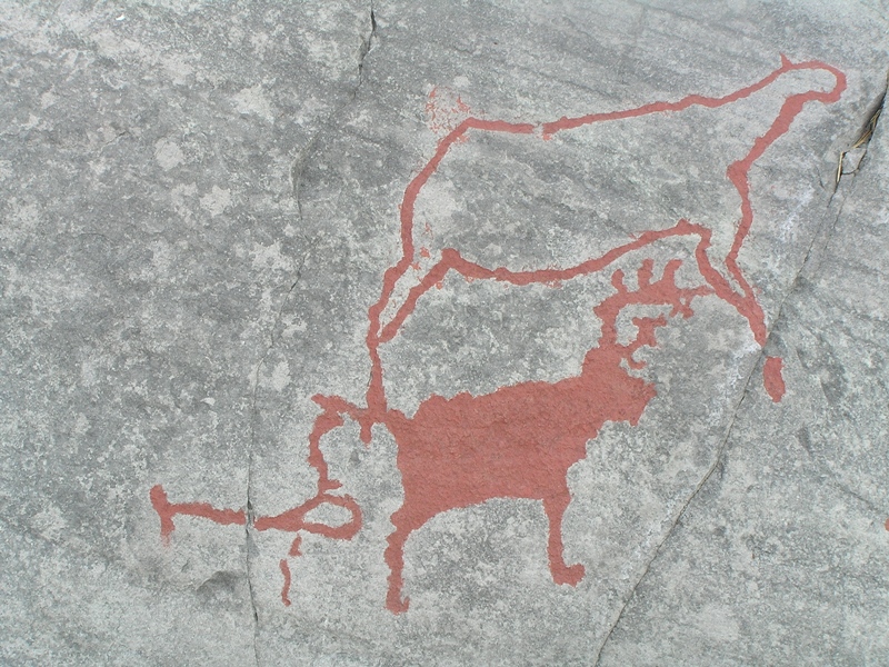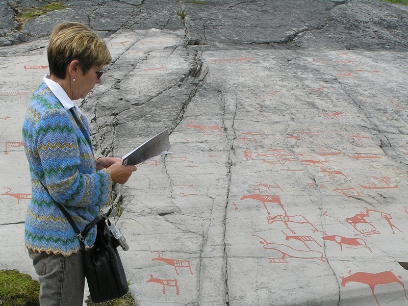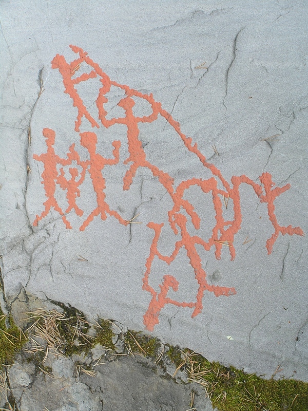 Naskalne ryty przedstawiają rybaków, myśliwych, całe rodziny. Zwierzęta, na które polowali dawni mieszkańcy wybrzeża – wśród nich renifery, niedźwiedzie, łosie, a nawet ptaki i ryby. Są też łodzie pełne rybaków lub wojowników, broń – łuki i dzidy, wreszcie ludzie w akcji. Inne rysunki mają znaczenie symboliczne, prawdopodobnie odnoszą się wierzeń czy rytuałów ich twórców. Dawni artyści tworzyli swoje dzieła przy użyciu kamiennych narzędzi. Rzeźbili na gładkich skałach tuż nad linią wody. Ponieważ z biegiem tysiącleci ląd się wynurzał, poniżej starych, powstawały coraz to nowe obrazy. Istnieje pogląd, że ich umiejscowienie u zbiegu trzech światów: kamienia, wody i powietrza, ma magiczne znaczenie.