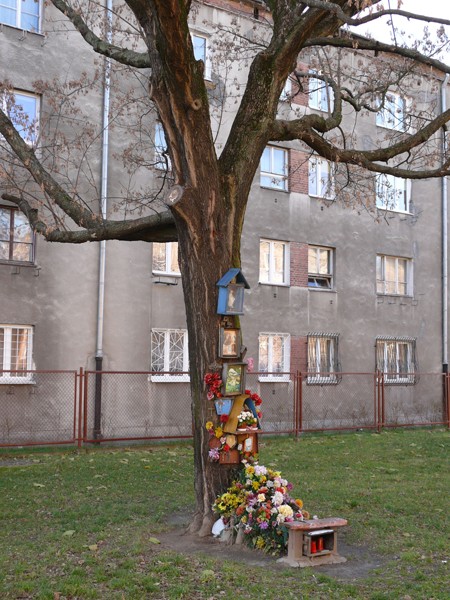 mają korzenie w tradycji wiejskiej. Dlatego wiele z nich zachowało się na terenach najpóźniej włączonych do miasta. Stoją bezpośrednio przy ulicy, albo w ogródkach domów. Bywają jedno- lub kilkukondygnacyjne, z wnękami na dewocjonalia, w kształcie domków zwieńczonych krzyżem, słupowe, metalowe oszklone na podmurówce lub w formie krzyży na wysokim postumencie. Często zawierają inskrypcje wotywne. Najstarsza zachowana taka kapliczka powstała w 1829 r., najmłodsza w końcu XX stulecia.