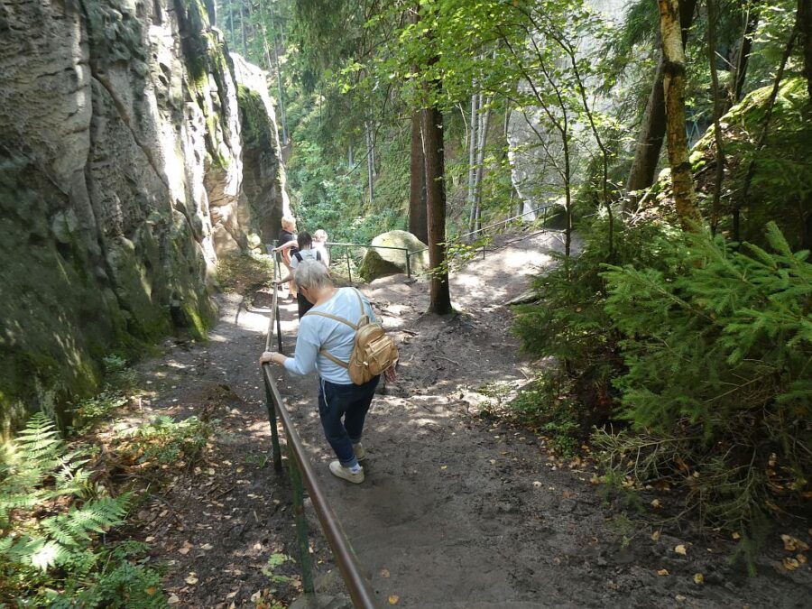To krótki spacer i szybkie zapoznanie się z ciekawymi punktami Prachowskich Skał. Rozpoczyna się przy schronisku turystycznym, skąd za kasą biletową kierujemy się w lewo, w kierunku skrzyżowania „Zadní točenice”. Tu skręcamy w prawo i zaczynamy wspinać się po schodach przez „Mysią Dziurę”. Jest to najwęższe miejsce w Prachowskich Skałach. Stąd idziemy na punkt widokowy „Czeski Raj” i podziwiamy przepiękny krajobraz tej krainy.