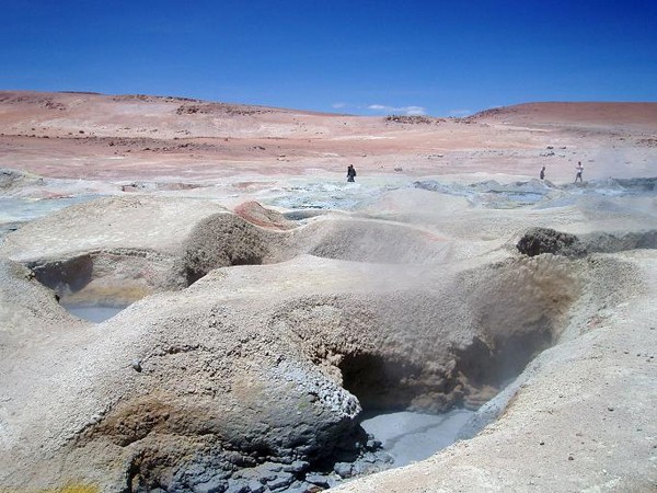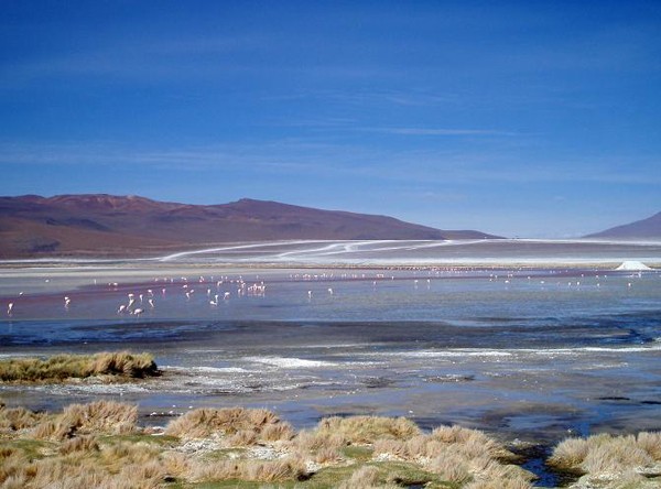Z każdą minutą robi się coraz zimniej, to przez wysokość. Pierwsza na naszej długiej liście atrakcji jest Laguna Verde. Zielono-turkusowa woda odbija jak w lustrze górzysty krajobraz. Jedziemy dalej, zatrzymujemy się na chwilę przy gorących źródłach, a potem prosto na gejzery. Zapach siarki jest nie do zniesienia, ale widok naprawdę zapiera dech w piersiach. Następna w kolejce jest Laguna Colorada, która zachwyca barwami i mnóstwem różowych flamingów. Bardzo często zdarza się, że ptaki muszą tutaj nocować, ponieważ zamarzająca woda skutecznie unieruchamia je przed odlotem.