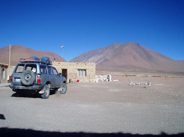 Pierwszy postój już za kilkanaście minut na granicy. Clive ma problemy z wizą. Boliwijczycy nie wiedzą czy obywatel RPA musi płacić ekstra. Po prawie godzinie czekania i po trzech telefonach okazuje się ze musi i to całkiem słono. Po załatwieniu wszystkich formalności nareszcie ruszamy. Chile zostaje za nami, przed nami bezkresna pustynia.