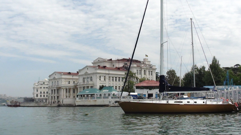 Mijamy Przystań Hrabiowską (Grafską). To jedna z pierwszych budowli w mieście. Budowę rozpoczęto j 3 czerwca 1783 roku, w dniu, który jest uważany za dzień założenia Sewastopola.