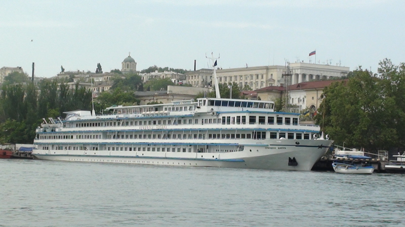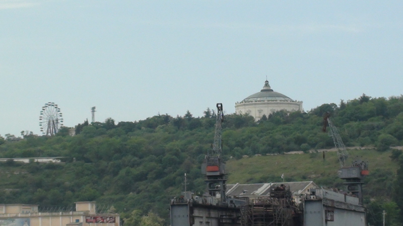 Z nabrzeża portu Sewastopol (???????????) stateczkiem turystycznym wypływamy w rejs po zatoce, w kierunku bazy Floty Czarnomorskiej. Ładnie stąd prezentuje się panorama miasta.