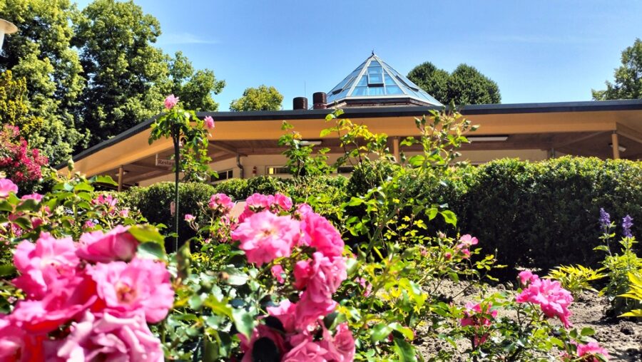 Największą uwagę zwiedzających przyciąga duży ogród nowości z setkami nowych odmian z najbardziej znanych niemieckich i międzynarodowych szkółek róż. Ale niesamowitą atmosferę tworzy również część Wehrinselpark. Ten obszar nawiązuje do modelu angielskiego stylu krajobrazowego. Kilkusetletnie drzewa i zieleń przystrzyżonych pięknie trawników, dziedziniec z pergolą – to wszystko tworzy zaczarowaną wręcz atmosferę.