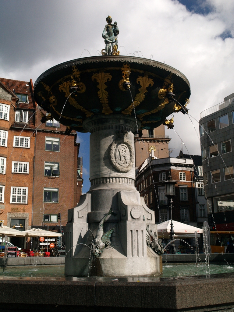 Na Nytorv stały również pręgierz i gilotyna. Jedną z ostatnich egzekucji wykonano tutaj w 1758 r. kiedy ścięci zostali dwaj fałszerze papierów wartościowych. W centrum Gammeltorv stoi piękna fontanna Caritas z 1610 r. z alegorycznym przedstawieniem miłosierdzia. Wodotrysk zwany jest również fontanną złotych jabłek. Ta nazwa przypomina wydarzenie z 1892 r., w którym obchodząca złote gody para królewska Luiza i Chrystian IX wrzuciła do fontanny w dniu urodzin króla, sztuczne złote jabłka. I ta „urodzinowa” tradycja jest rokrocznie kontynuowana przez króla czy królową w dniu urodzin. Gdzie się te „jabłuszka” podziewają? – nie wiem. Na placu zwraca również uwagę stary kiosk telefoniczny zainstalowany tutaj w 1913 r. Jego modele znajdują się na wielu placach Kopenhagi.