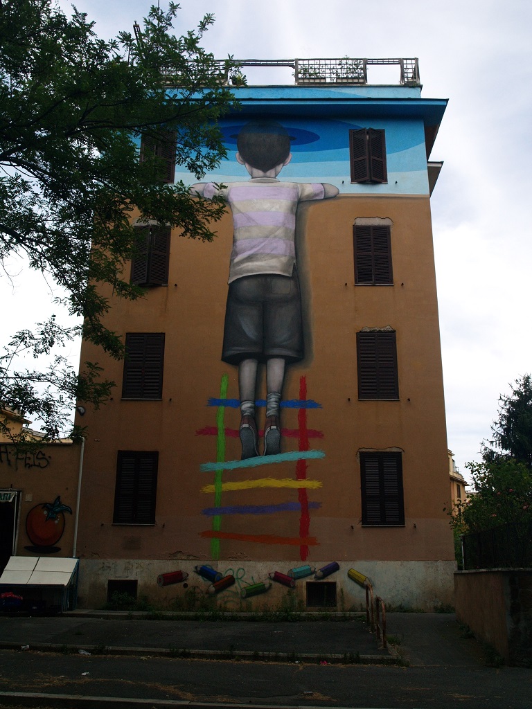 W południowej robotniczej dzielnicy Rzymu Ardeatino, przy Viale di Tor Marancia nr 63, na początku 2015 r. ściany domów mieszkalnych pokryte zostały ogromnymi muralami. To typowe blokowisko czteropiętrowych gmachów, z obszernymi podwórkami, poweselało. Wydaje się też, że murale sprowokowały dbałość mieszkańców osiedla o otoczenie; ławeczki, kolory kwiatów na podwórkach i balkonach, a nawet dekorowanie otoczenia własną, amatorską sztuką, choćby taką, jak dłubana w drewnie. Jest w tym odwieczna prawidłowość. Sztuka łagodzi obyczaje, można powiedzieć rozszerzając arystotelesowską mądrość: muzyka wpływa na uszlachetnienie obyczajów.