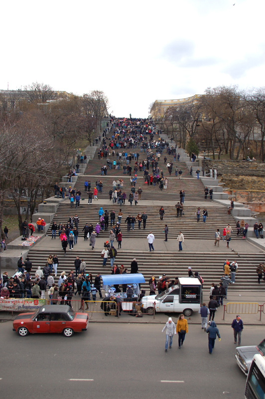 Odessa to sławne nadmorskie „Schody Potiomkinowskie”, które niejednego już rozczarowały. Zwłaszcza tych, którzy widzieli je w scenie ze zjeżdżającym nimi dziecięcym wózkiem i maszerującymi marynarzami w filmie Sergiusza Eisensteina.