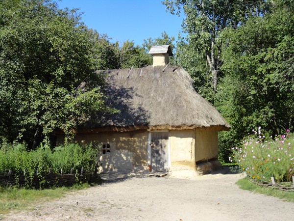 Najstarsze pochodzą jeszcze z XVI wieku. Dominują budynki z XVIII i XIX w., ale trafiają się także z początku XX wieku. Np. budynek Silśkoi Uprawy ? zarządu wsi, czyli sołectwa Młiiw w rejonie horodiszczańskim obwodu czerkawskiego. Większość chat kryta jest słomianymi strzechami, chociaż trafiają się, nieliczne, z dachami blaszanymi. Cerkwie i młyny oczywiście kryte gontami. Na obiektach znajdują się drewniane tablice z wypalanymi informacjami o nich. Np. ?Chata z końca 18 w. ze wsi Chreszczatyk czerkaskiego rejonu (powiatu) i czerkaskiej obłasti (obwodu ? województwa)?. Wewnątrz można obejrzeć autentyczne wyposażenie kuchni, sieni oraz izb mieszkalnych.