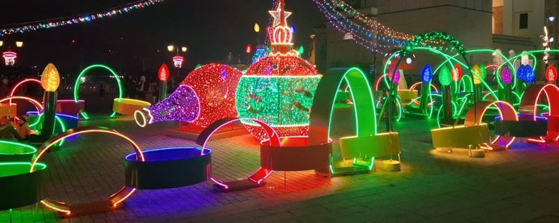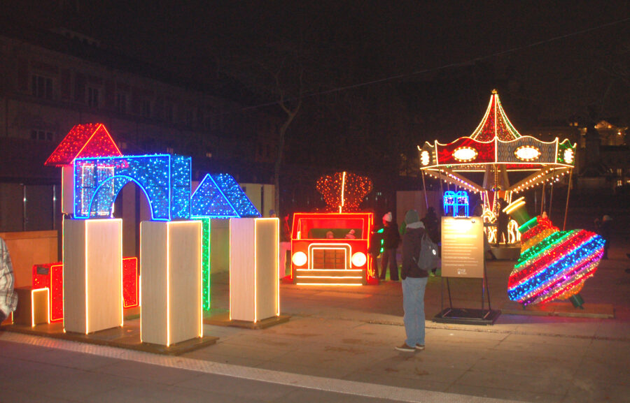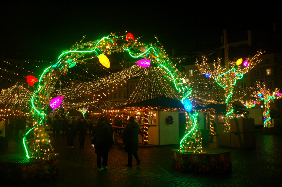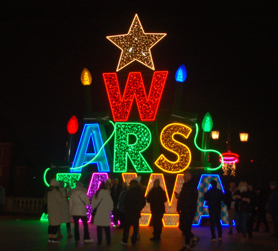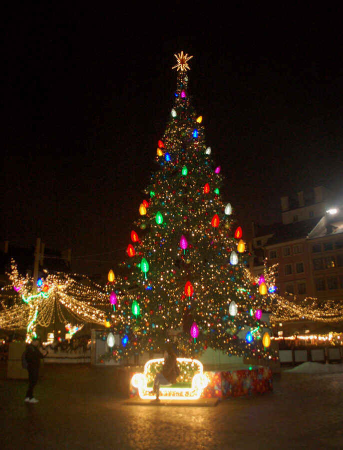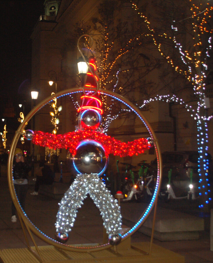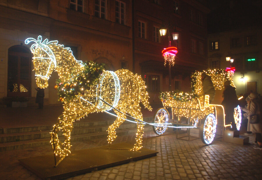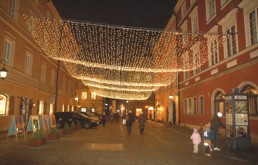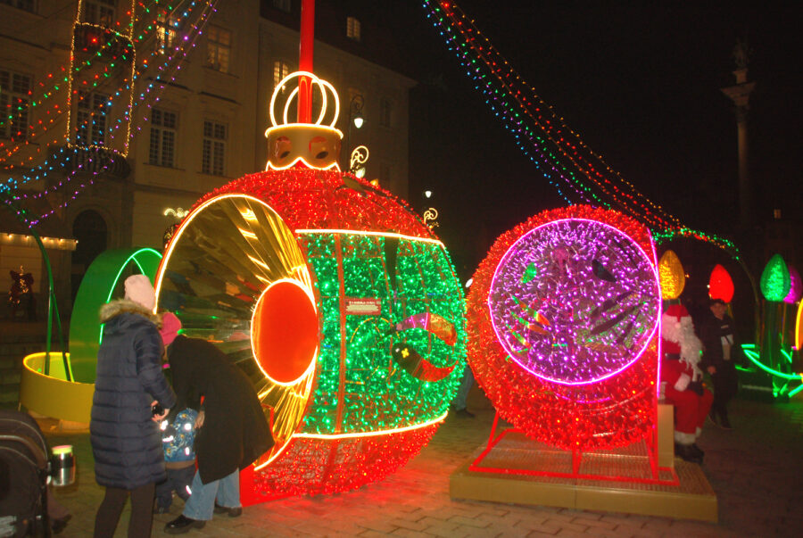 A był to już kolejny rok, w którym zrezygnowano z niektórych instalacji budzących duże zainteresowanie. Ratusz zapowiada co prawda, że jest to już ostatni rok w którym świetlnie prezentowano scenki z XIX- wiecznej Warszawy, gdyż w roku 2026 nastąpi ich zmiana. Oby! Tymczasem coraz mniej pozostało do wymiany. Już dawno zniknął sprzed Pałacu Staszica bardzo popularny konny tramwaj linii 18 „jadący” na ulicę Stalową na Pradze. Nie ma dużego, jasnego, wielobarwnego „labiryntu” w pobliżu hotelu „Bristol”. A tamtejsza reklama ceramiki nie jest świąteczną, lecz chyba całoroczną.