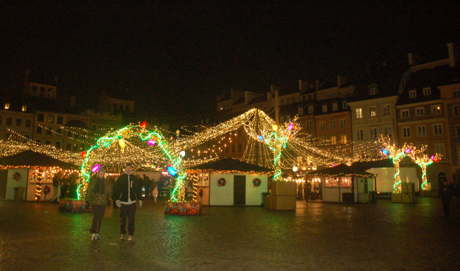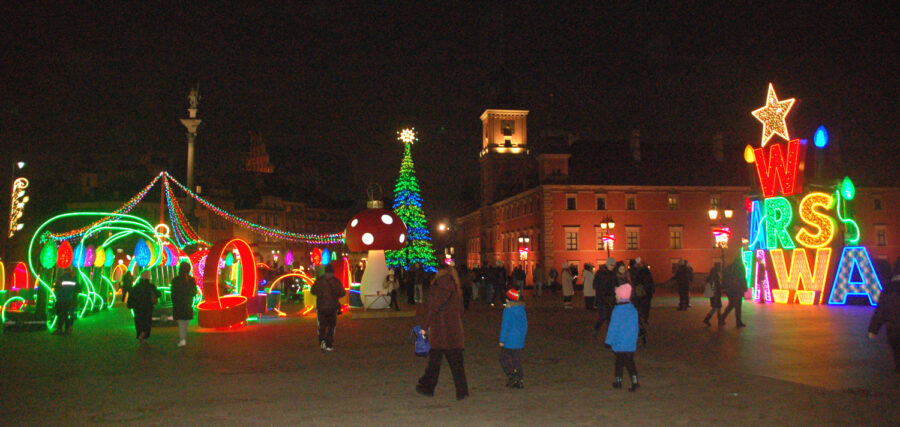 Przede wszystkim dwie dorożki konne, do których można wsiadać, z bogato iluminowanymi „szkapami” na Placu Zamkowym. Wielobarwne iluminacje z „żywym” Świętym Mikołajem nad Trasą WZ między Zamkiem i kościołem św. Anny. Wysoka choinka przed Zamkiem. Nie zmienione zostało też wejście na świąteczny jarmark pod staromiejskim murem. Chociaż w tym roku głównym jarmarkiem w stolicy jest ten przed Pałacem Kultury i Nauki.