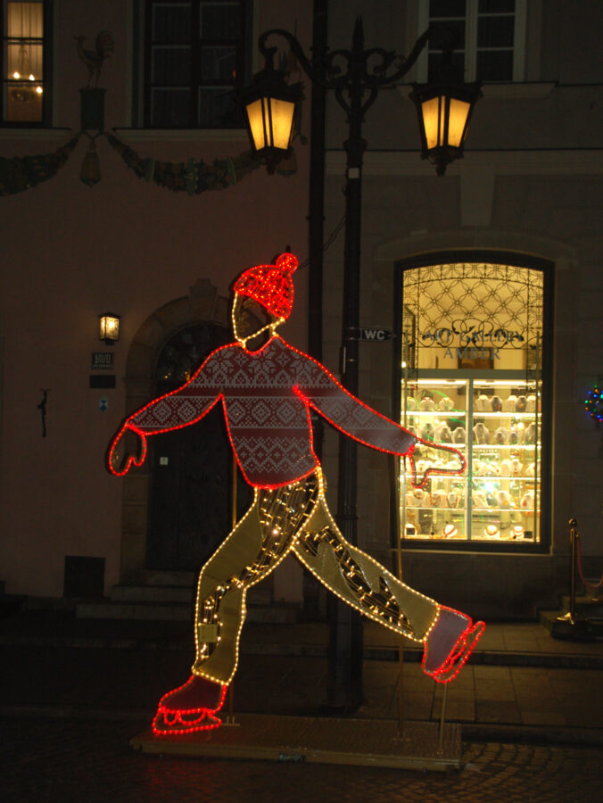 Ewentualnie zobaczyć można jeszcze karuzelę, wielkiego bączka i powiększone klocki, a nieco dalej nostalgiczną, czerwoną „Syrenkę”. No i udekorowane lampkami latarnie. Na Rynku Staromiejskim jest rozświetlone lodowisko dookoła studni z Syrenką, a obok niego kilka kramów z napojami i przekąskami, na razie nie oblegane przez klientów. A dalej przez Barbakan aż do Rynku Nowomiejskiego skromnie, jak w latach ubiegłych.