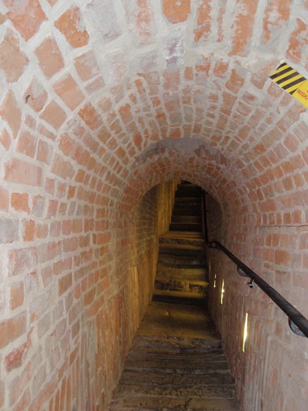 Wędrówka trwa zaledwie kilka minut. Kanał jest ciasny (ma szerokość około metra) i niewysoki (1-2 metry). Ma sklepienie z cegieł i kamienną podłogę, pnącą się dość ostro. Do czego służył ten korytarz?