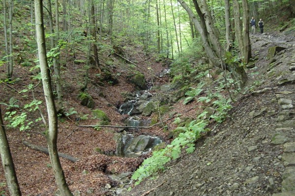 Spacer doliną jest bardzo przyjemny. Wygodną ścieżką idziemy wzdłuż prawego brzegu potoku płynącego przez malutkie progi skalne. Zbocza dolinki są miejscami dość strome i porośnięte gęstym lasem. Po kilkunastu minutach przechodzimy na drugi brzeg potoku. Dochodzimy do małego rozwidlenia i tu dość ostro wspinamy się w lewo. Podejście jest ubezpieczone drewnianymi schodkami i poręczami. Nad głową widzimy ładną wapienną basztę wyrastającą z grzbietu Spaleńca. U jej stóp jest wejście do jaskinki na wysokości 1010 m n.p.m. Ukazuje się oczom sporych rozmiarów otwór w skale. Za krótkim przedsionkiem znajduje się wysoka komora z otworem w sklepieniu. Dalej dno opada. Jaskinia ma 43 m deniwelacji i 180 m długości ciągów. Można ją zwiedzać, ale konieczna jest latarka. W Dolinie ku Dziurze odkryto cztery małe jaskinie: Dziura, Lisia Jama, Schron nad Dziurą Wyżnią i Nyża za Półką.