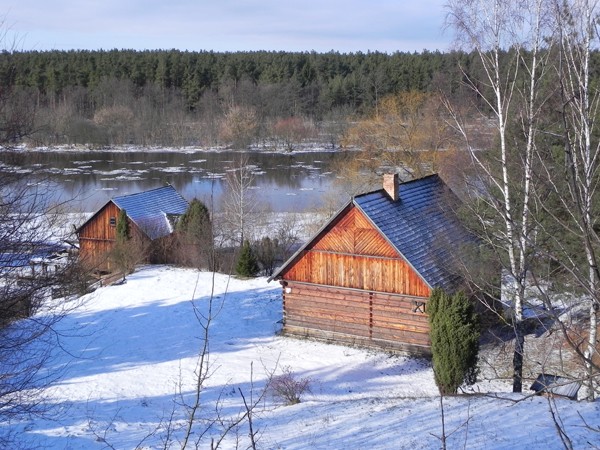 Skansen zimą jest nieczynny, ale można się wybrać na spacer między starymi chałupami, popatrzeć na zabytki budownictwa z zewnątrz, i na dolinę Narwi poniżej. Bo muzeum jest ładnie posadowione na wysokim morenowym brzegu nad rzeką.