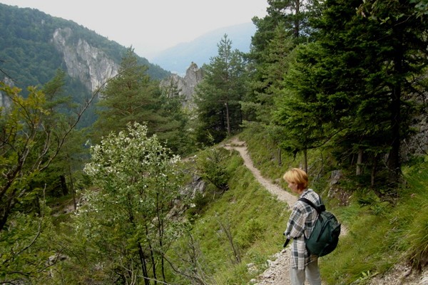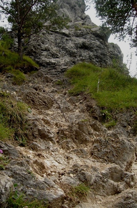 Leśnymi zakosami schodzimy ostro. Odnoszę wrażenie że to już koniec imprezy, ale jakie to były złudzenia? Otwiera się przed nami widok na Sokolie i dolinę Vrátna. No i się zaczyna? Skały, piargi, łańcuchy? Tą drogę przez mękę umilają fantastyczne widoki na Janosikową ścieżkę. Klucząc między skałami Bobot zbliżamy się do kresu wyprawy. Już wyraźnie widać drogę do Terchovej.