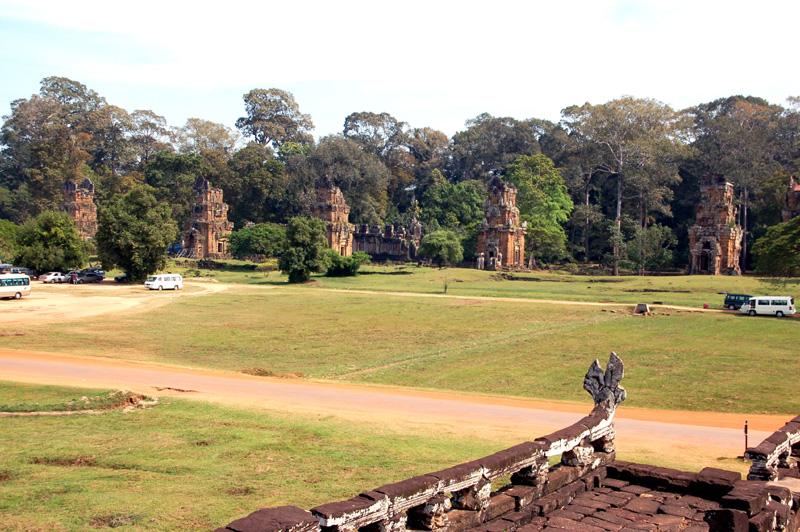 I chociaż jego wznoszenie zakończył na początku XIII w król Jayawarman VII, to budowę zapoczątkowali jego poprzednicy. I to dosyć odlegli, bo już w X wieku – Rajedrawarman, a później Suryawarman I. Budowla pięciometrowej wysokości nie licząc wież, zbudowana została z laterytu na powierzchni14 hektarów. Zajmowała prostokąt o długości 585 m na osi wschód-zachód i szerokości 246 z północy na południe. Pałac otoczono później murem i fosą wypełnioną wodą. W jego zespole o harmonijnych promocjach były również wieże – gopuramy, z których zachowało się pięć. Większość budowli pałacowych była z drewna, nie pozostały więc po nich ślady. Natomiast w kamiennej części uwagę przyciągają dekoracje kwiatowe oraz inne zdobienia odrzwi i ram okiennych.