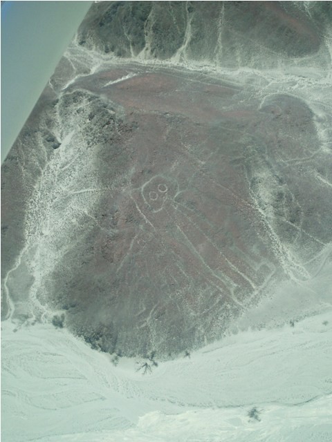 Przez kapryśną pogodę (silny wiatr zmienia parokrotnie położenie chmur) oglądanie rysunków to swego rodzaju totolotek. Ja mam duże szczęście, niebo jest czyste i niebieskie, a linie wydają się prawie na wyciągniecie reki. Rysunki znajdują się na obszarze 50 kilometrów kwadratowych i przedstawiają najczęściej rośliny, zwierzęta i figury geometryczne. Mnie najbardziej spodobała się małpa z bardzo precyzyjnie wykonanym ogonem, oraz kondor zajmujący powierzchnię prawie 150 metrów.