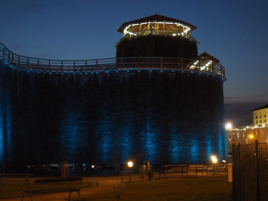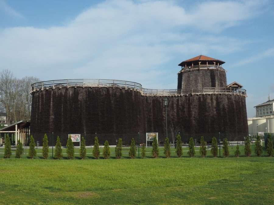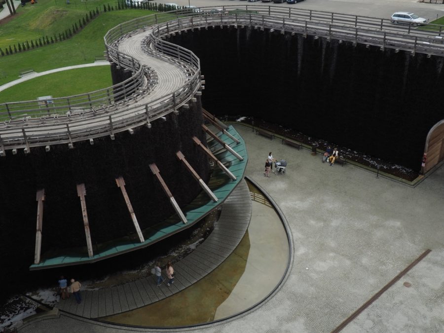 Na skraju parku otaczającego zabudowania kopalni soli Wieliczka stoi dość nowa w porównaniu z całą resztą zabudowań, bo otwarta w 2014 r., tężnia solankowa. Ogromna, z wysoką na 22,5 metra wieżą, przypomina nieco kształtem średniowieczny zamek.