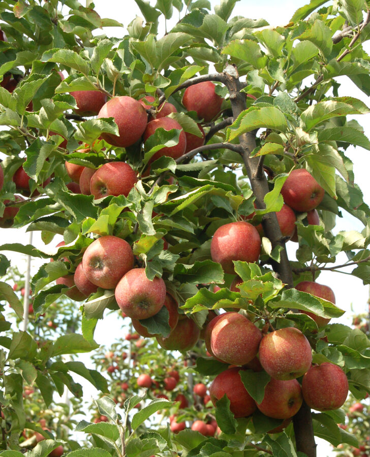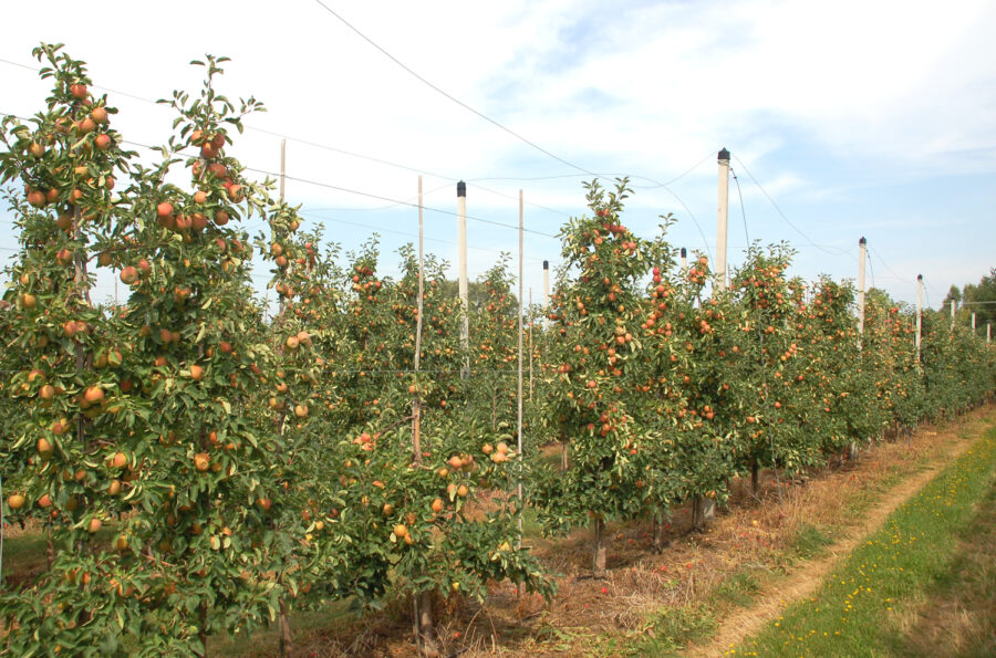 Trudno wręcz uwierzyć, że nawet niewielkie gałązki są w stanie utrzymać po kilkanaście ogromnych, czerwonych jabłek deserowego gatunku Red Prince. Największe z nich ważą nawet po 30 i więcej dag. Wiszą w ogromnych skupieniach, apetyczne, fotogeniczne, czekające na zbliżający się czas ich zrywania. Tutaj wyłącznie ręcznego, sztuka po sztuce. To nie są jabłka przemysłowe. Mimo iż część z nich przeznaczona zostanie na sok. Ale do przerobu muszą trafić bez najmniejszych obić, które są czymś oczywistym, gdy jabłka zrywa się z drzew powodując ich spadanie owoców na płachty rozłożone na ziemi.