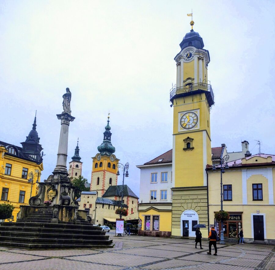 W najwyższym punkcie rynku stoi wieża zegarowa z 1552 roku z galeryjką z której strażnicy miejscy wypatrywali pożaru. Obok barokowy kościół św. Franciszka Ksawerego (Jezuitów), będący kopią jezuickiego kościoła Il Gesú w Rzymie, obecnie bazylika katedralna, siedziba rzymskokatolickiej diecezji bańskobystrzyckiej.