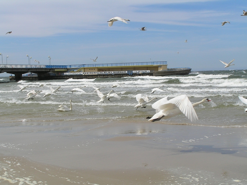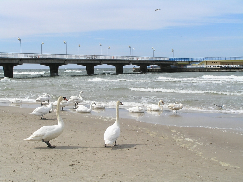Spacerując po molo należy się jednak skupić na wdychaniu jodu. Nie ma tu niestety żadnej kawiarni, w której dało by się posiedzieć za wiatrem, przy kawie lub przy piwie. Można posiedzieć na ławeczce, popatrzeć na surferów i łabędzie przy brzegu albo na nieliczne stateczki wycieczkowe z rzadka wypływające stąd w morze. Więcej wyrusza z portu.