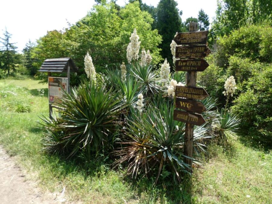 * W parku stoją tablice z mapami opisujące kolekcje roślin i atrakcje parku.