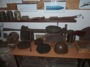 W niewielkim muzeum można obejrzeć broń i dokumenty z drugiej wojny światowej . To wyjątkowe muzeum bo możesz wziąść eksponat do ręki i obejrzeć .