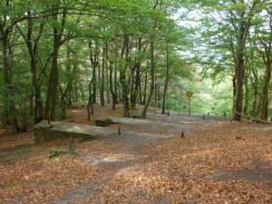 Tuż za rogatkami Międzyzdrojów, naprzeciw niewielkiej przystani nad jeziorem Wicko, na zalesionym teraz wzgórzu był w czasie II wojny niemiecki poligon doświadczalny.