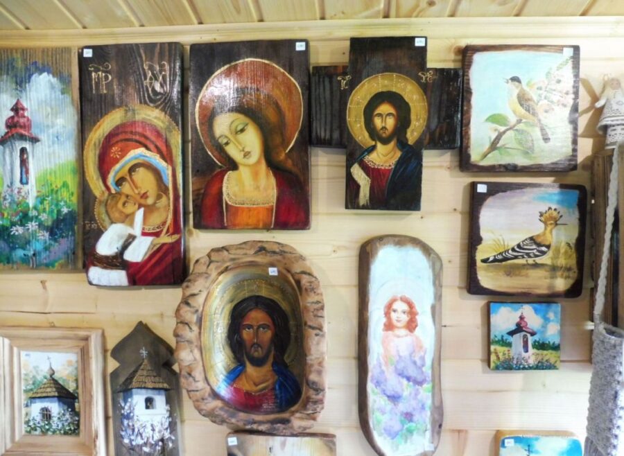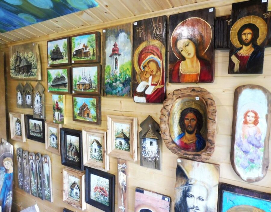 Oprócz ikon znajdziesz w galerii w Smereku wykonane przez właścicielkę Katarzynę Wolan biżuterię, malowane obrazy itd. Są też figury aniołków, magnesy, ale też mapy oraz literatura dotycząca Bieszczad. Warto tam zajrzeć.