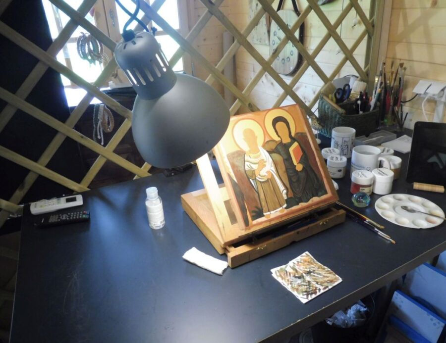 Czas pracy nad ikoną zależy od jej wielkości i liczby szczegółów, nasycenia kolorów i konturów. Zwykle pisanie ikony trwa od trzech tygodni do dwóch miesięcy. Pani Katarzyna pracuje od 6 do 8 godzin dziennie.