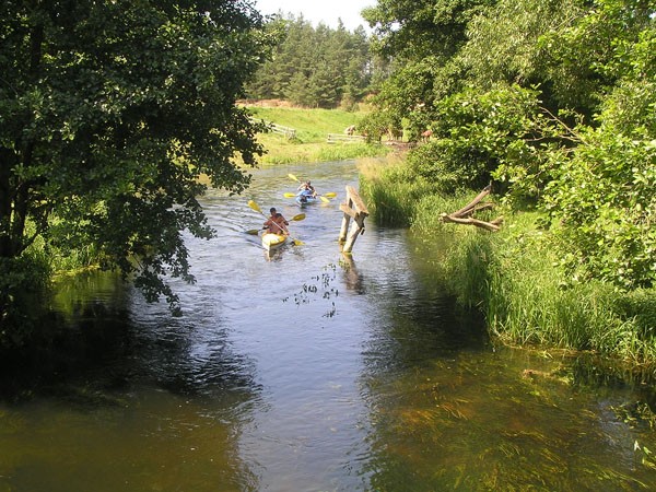 Najróżniejsze gatunki trzcin i traw wchodzą do wody, nad nimi pochylają się gałęzie olch i wierzb. Z dna rzeki wyrastają gęste wodorosty, płyniemy jak po zielonym dywanie. Tylko tam, gdzie nurt przyspiesza widać dno: raz gdzieś głęboko, to znów całkiem płytko, usiane drobnymi kamyczkami. Nie ma tylko ptaków ani dzikich zwierząt, obiecywanych w przewodnikach. Czy pochowały się w lesie przed upałem, czy przed przepływającymi raz po raz ludźmi? Niby płyniemy sami, ale gdy tylko zatrzymamy się choćby na krótki postój, mijają nas kolejne załogi. Jest ruch na Rospudzie.