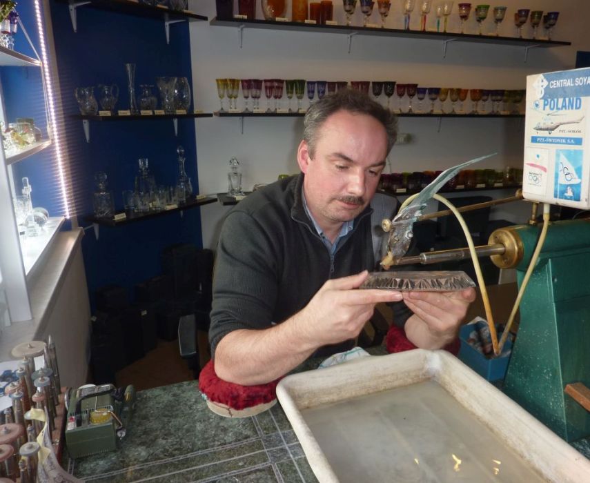 jest Galeria Szkła i Kryształu . Wtedy był warsztat w którym gościu szlifował kryształy i szkło .