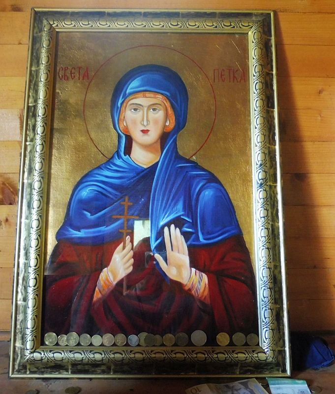 Wracając mijamy cerkiew św. Petki (inaczej św. Paraskewa). Św. Petka jest patronką od uzdrowień chorych. Zgodnie z instrukcją w cerkwi, należy dotknąć chusteczką bolącego miejsca, wypowiedzieć życzenie a potem umieścić chusteczkę na drzewku. Co 7 dni chusteczki zakopywane są w ziemi i cierpienia zostają tu na zawsze.